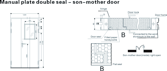 The door frame is made of SPCC 1.5mm, the door board is SPCC 1.0mm, the surface is coated, the door body is sandwiched with paper honeycomb, the thickness of the door is 50mm, which is stable, beautiful and easy to clean.